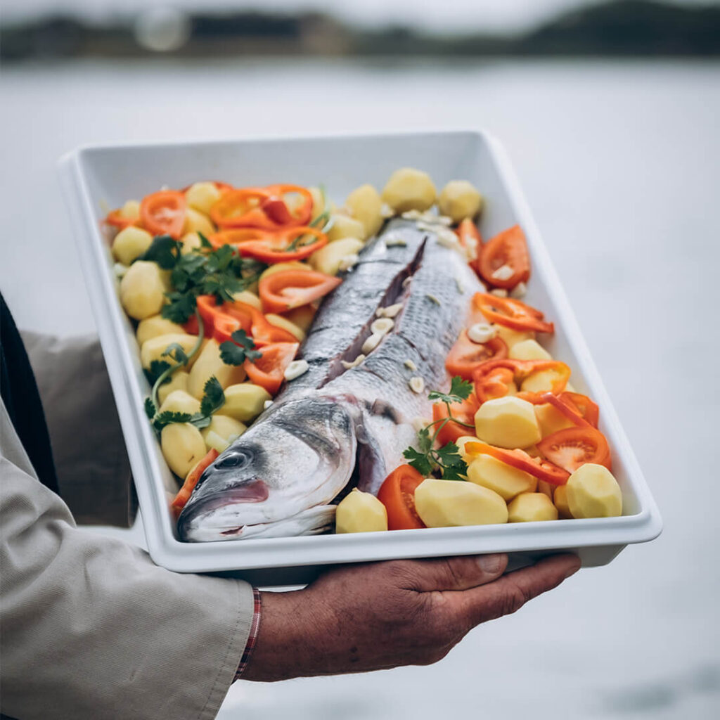 Porque o Robalo é rei à mesa, apresentamos várias formas de degustação, coroando um legado majestoso e irrepreensível. Façamos, então, uma vénia a sabores de outrora, resgatados com sentimento de pertença, conferindo soberania e legitimidade à nossa gastronomia atlântica! Bem- vindos a bordo nesta odisseia repleta de maravilhas! Porque, afinal, O Robalo está Aqui…